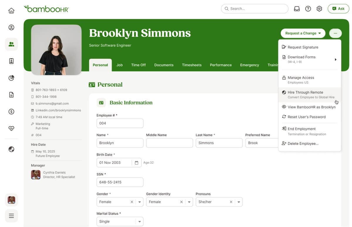 BambooHR is an HR platform designed to help companies manage the full employee lifecycle and HR reporting. It’s often used by businesses that need more structure and visibility as their workforce grows and have the budget to afford it.