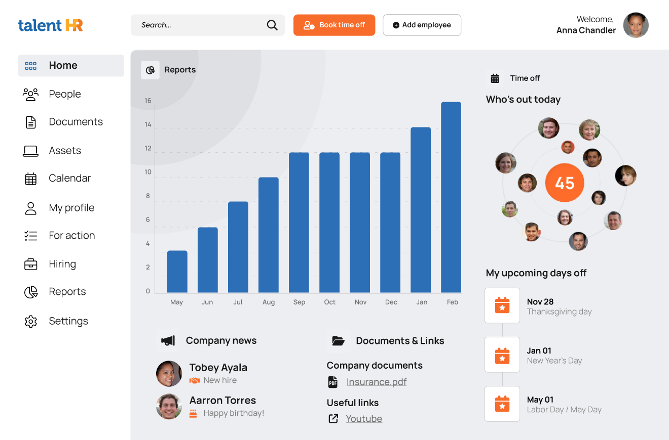 Manufacturers deal with strict compliance requirements and complex shift schedules, and TalentHR simplifies it all. Centralized employee records keep safety certifications, training manuals, and contracts in one place, while automated onboarding gets new hires up to speed before their first shift. Plus, the platform offers an AI-powered tool to create HR policies for manufacturing, as well as an asset management tool. Need to fill a role fast? The quick-set applicant tracking system makes finding workers a snap.